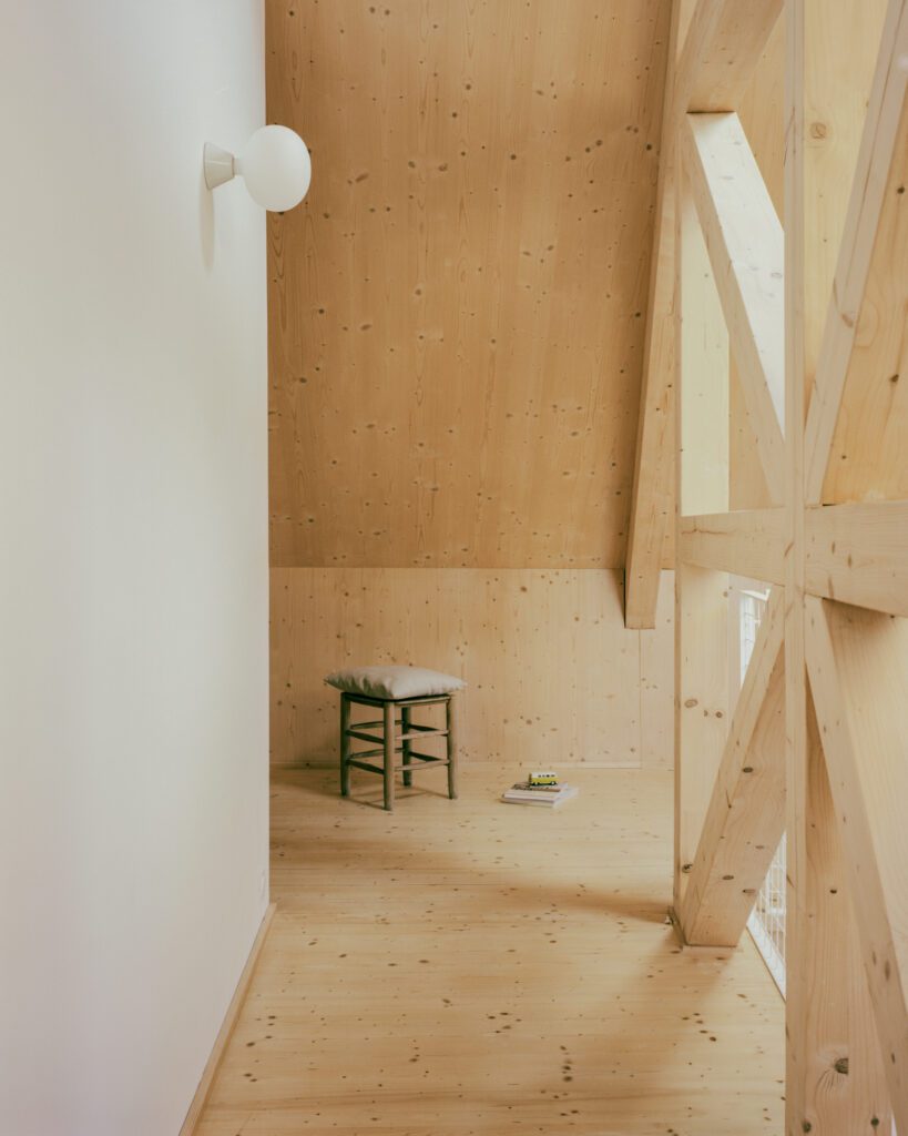 I pannelli massicci in legno NOVATOP formano qui pareti e soffitti, che rimangono a vista negli interni. La struttura non è nascosta, ma diventa una parte naturale dell’architettura e della sua atmosfera.