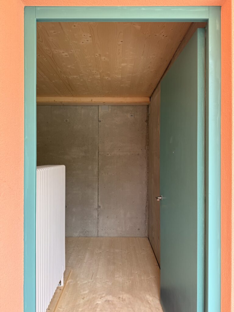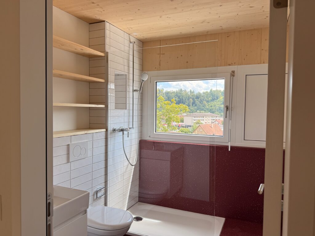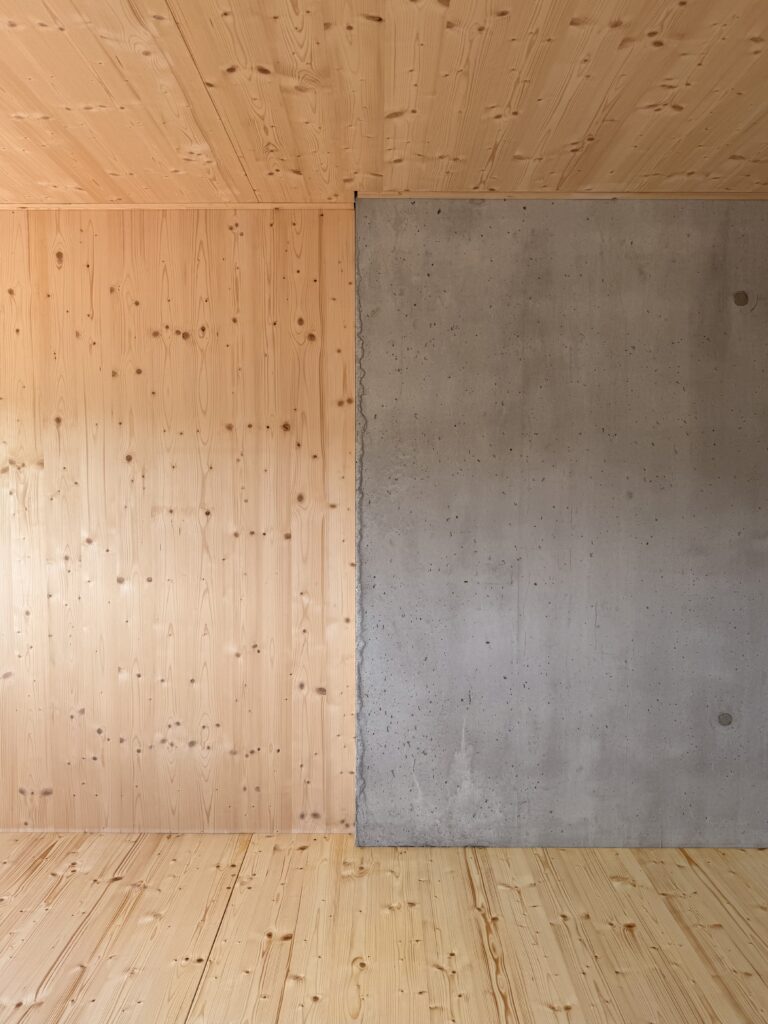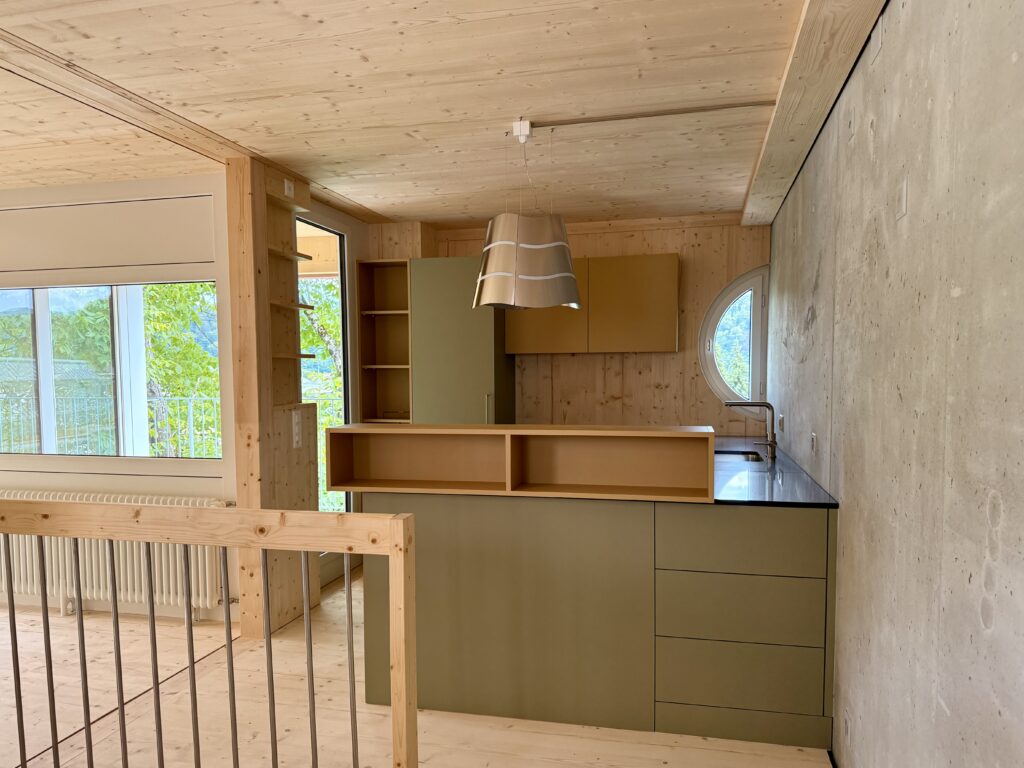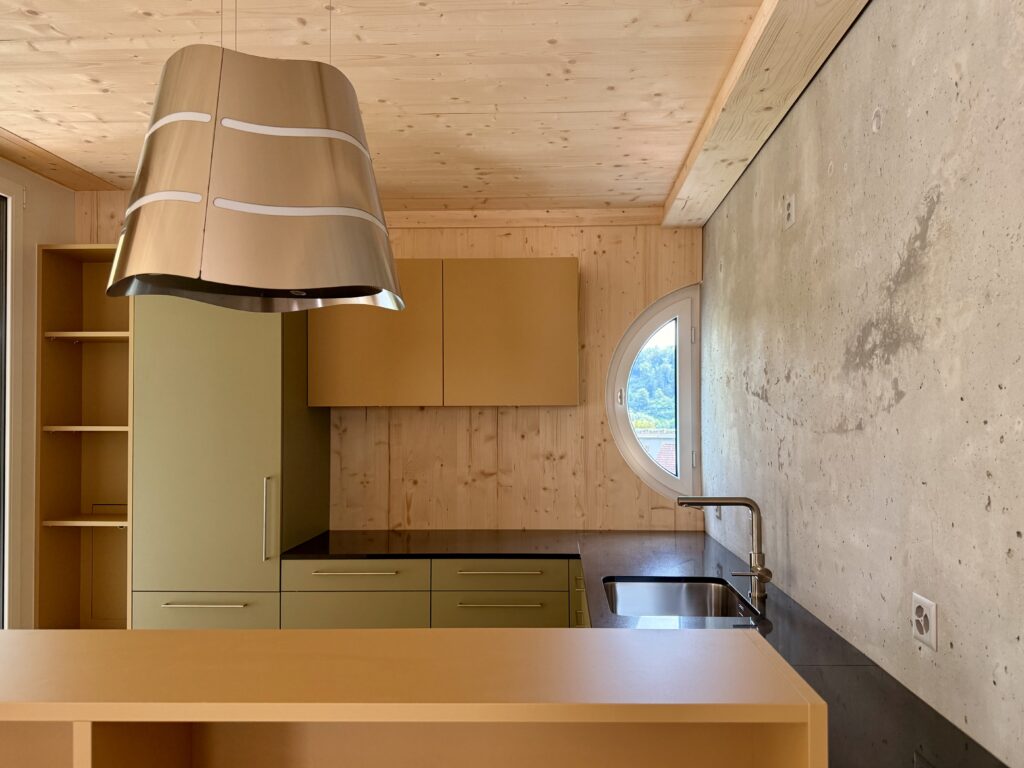 Il concept architettonico si basa su una combinazione equilibrata di legno e calcestruzzo, che risulta allo stesso tempo elegante e funzionale. Le abitazioni su due livelli offrono uno spazio abitativo confortevole per famiglie di quattro persone e favoriscono la creazione di un piacevole ambiente comunitario.