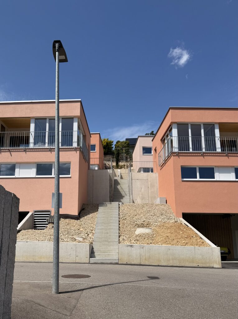 Il complesso di case unifamiliari nella città svizzera di Zwingen rappresenta un esempio di abitare moderno e al contempo accogliente. Il progetto combina un’architettura senza tempo con una forte attenzione alla qualità dell’ambiente e alla sua integrazione naturale nel contesto circostante.